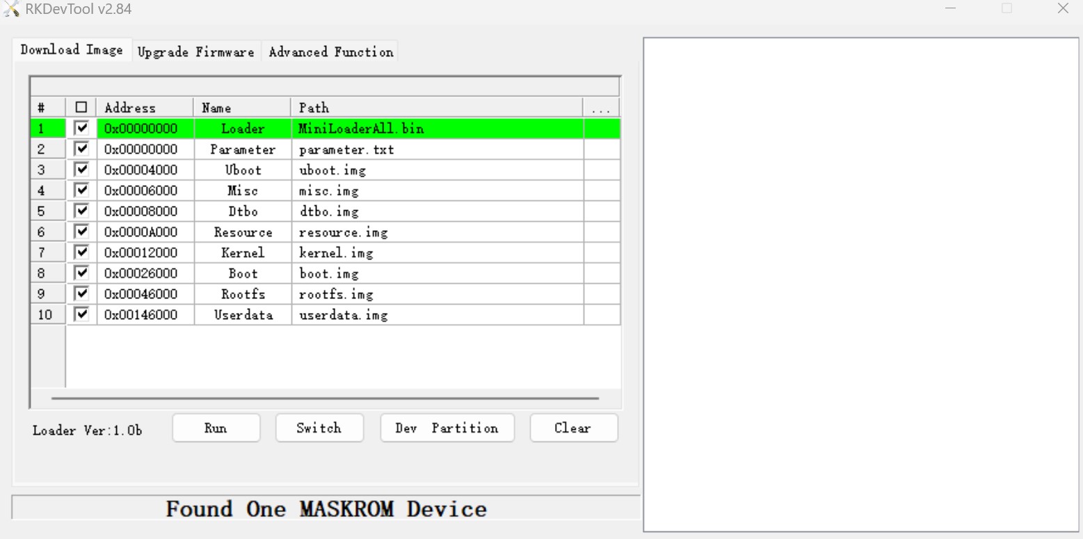I hold the maskrom button (for 3 seconds) while connecting power and the sys light stays solid (instead of blinking "heartbeat" like it does when it boots to openWRT), but I am getting no video output and nothing happens after a couple hours. I have tried multiple SD-to-eMMC images, both with my custom image and with the defaults to no avail. I've also tried putting the image straight on the SD card with no luck, all I get is a solid red sys light. The light still does "heartbeat" if I don't hold the maskrom button while booting.