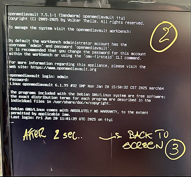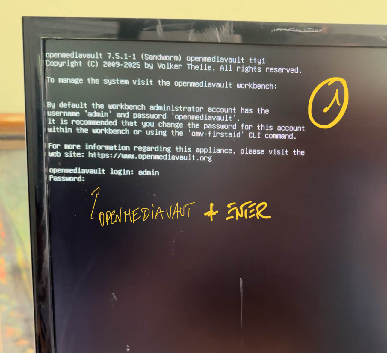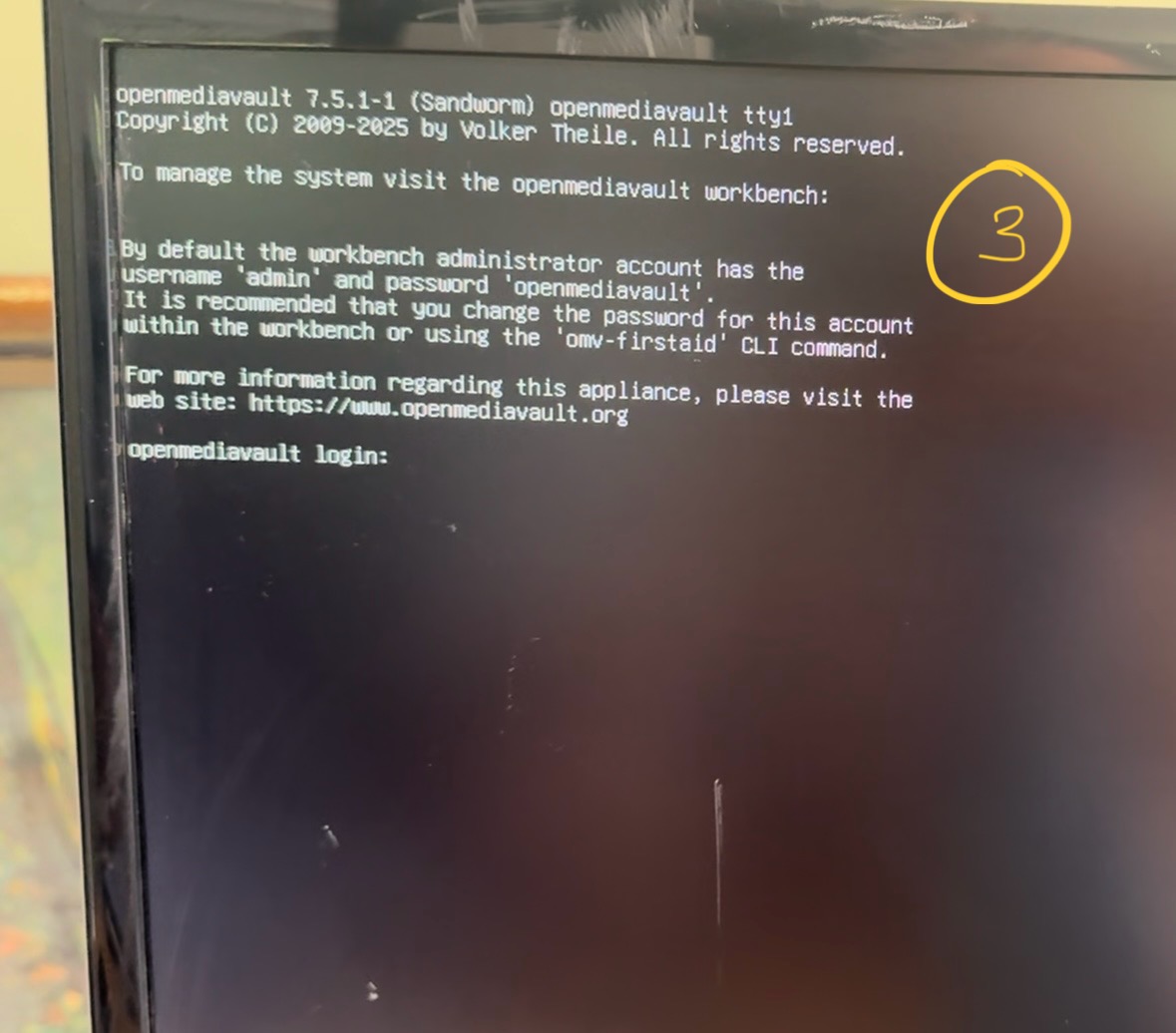 Login: admin + openmediavault as specified on the screen...